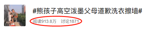 事情發生后,熊孩子的父母“兵分兩路”迅速補救:孩子媽媽帶著孩子挨家挨戶敲門道歉,并承諾把臟的衣服讓孩子手洗恢復,孩子爸爸請高空作業的保潔公司幫忙恢復墻體,要求孩子一直站在太陽底下看著,直到清潔工人清潔完畢,方可離開。