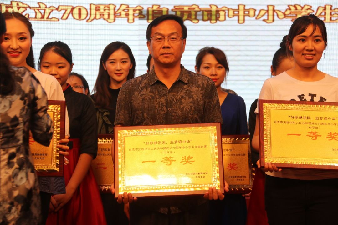 9月25日下午,由自貢市教體局主辦的“好歌獻祖國,追夢頌祖國”——慶祝中華人民共和國成立70周年合唱比賽在自貢市蜀光綠盛南湖校區舉行。來自全市的14支中學合唱隊參加了此次比賽。自貢衡川實驗學校合唱團脫穎而出,榮獲一等獎第一名。