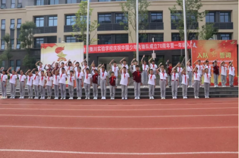 “準備著,為共產主義事業而奮斗!”“時刻準備著!”這一聲聲稚嫩而有力的聲音久久飄蕩在自貢衡川實驗學校的上空,它將激勵著孩子們奮勇前行,聽黨話、跟黨走,爭做新時代好隊員,用實際行動將紅色基因一代代地傳下去!