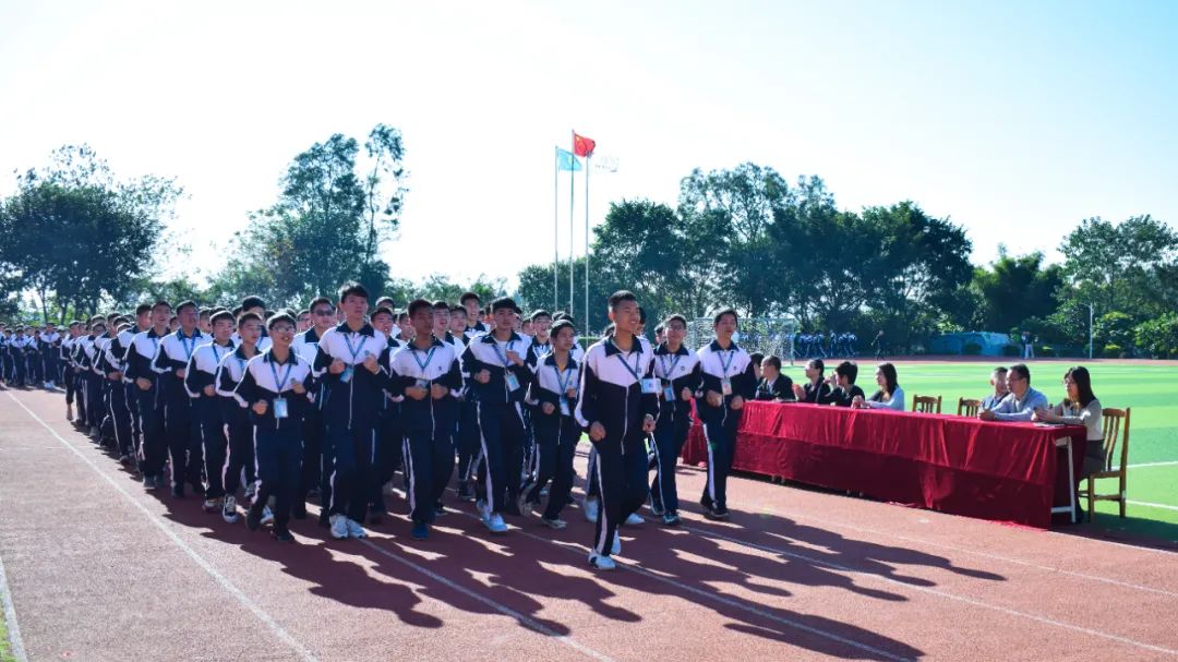 9:00,活動在高新技校西區足球場拉開序幕,理工系學子精神抖擻地跑操出場。