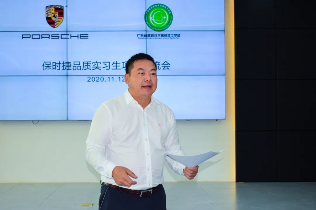 天河保時捷中心區域人力資源經理麥燕梅、佛山順德保時捷中心行政人事經理沈琴,廣東省高新技術高級技工學校執行校長肖中圓,廣東省高新技術高級技工學校校長助理、保時捷品質實習生(廣東高新)項目負責人王則如,廣東省高新技術高級技工學校校長助理孫建華、王磊,計算機與藝術系主任張振、理工系副主任朱瑞明、經貿系副主任利蘭香,保時捷技術項目教師江國平等和理工系部分師生出席活動現場。