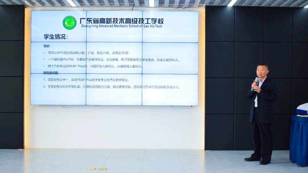 PEAP項目廣東高新負責人王則如老師從學生培養、教師隊伍、實訓建設、項目管理評估等方面,作出項目匯報: