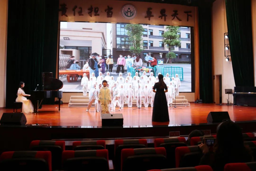 《女兒的日記》,該歌曲由我校唐貴飛老師根據富順赴武漢抗疫醫護人員馮敏女兒的日記創作。孩子們現場深情演唱,重現抗疫期間令人敬佩的最美逆行者!