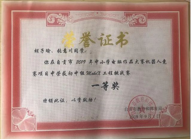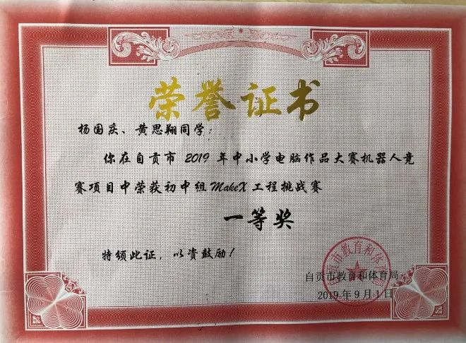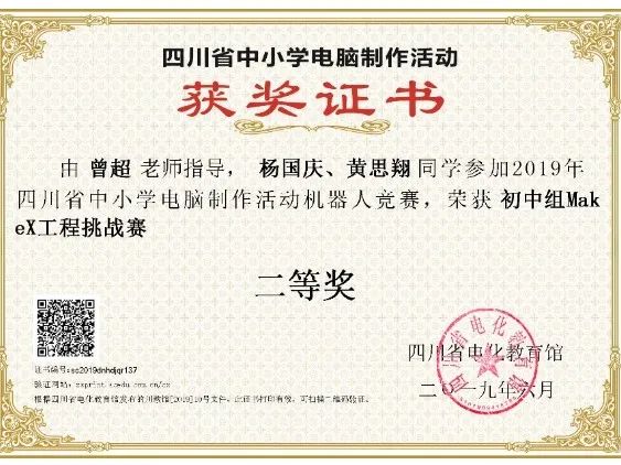 學(xué)生獲2019年四川省中小學(xué)電腦制作活動機器人競賽省二等獎1項、三等獎2項。