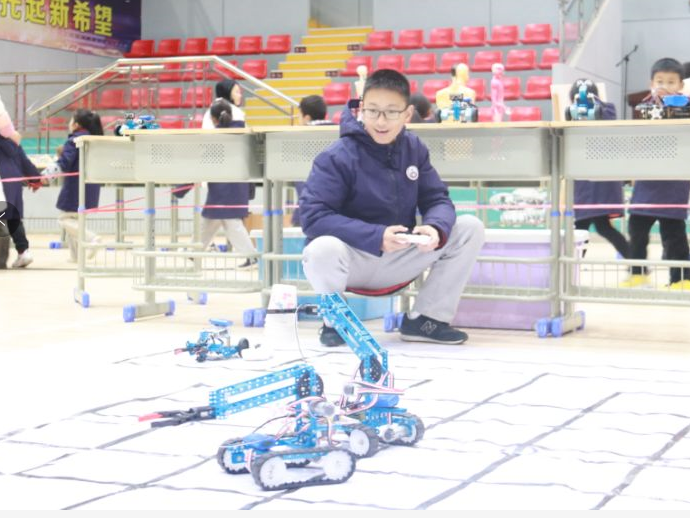 學(xué)生在2019年中小學(xué)電腦作品大賽機器人競賽中獲初中組make X工程挑戰(zhàn)賽一等獎。