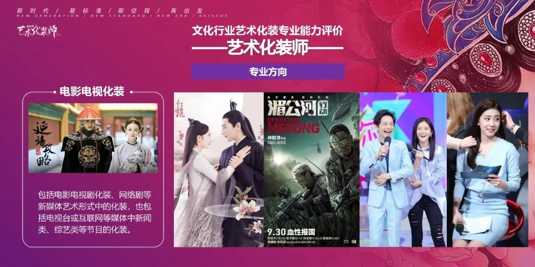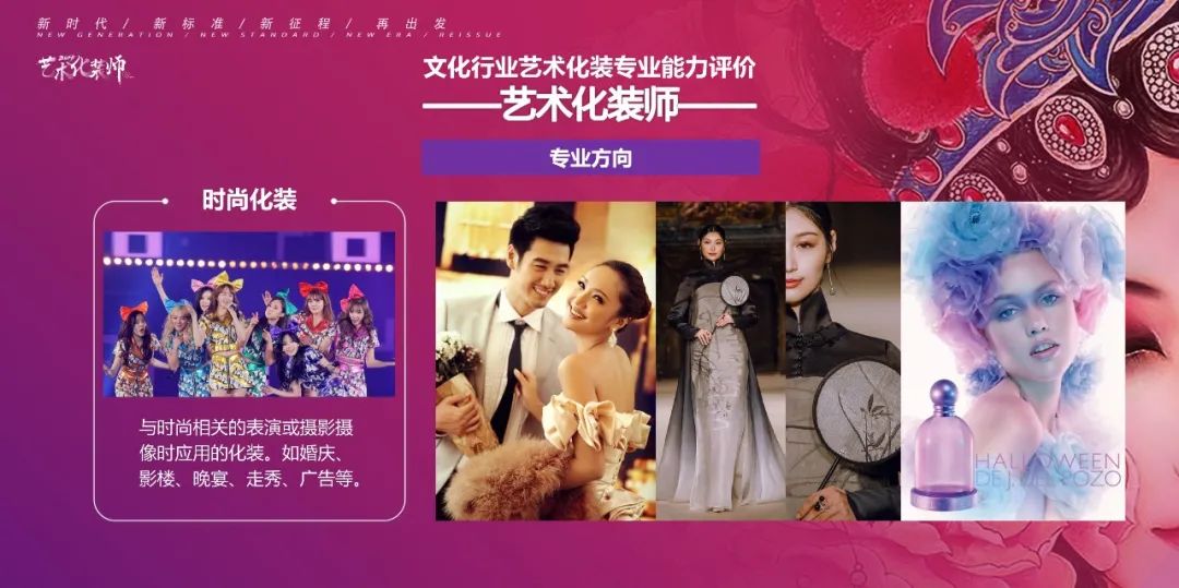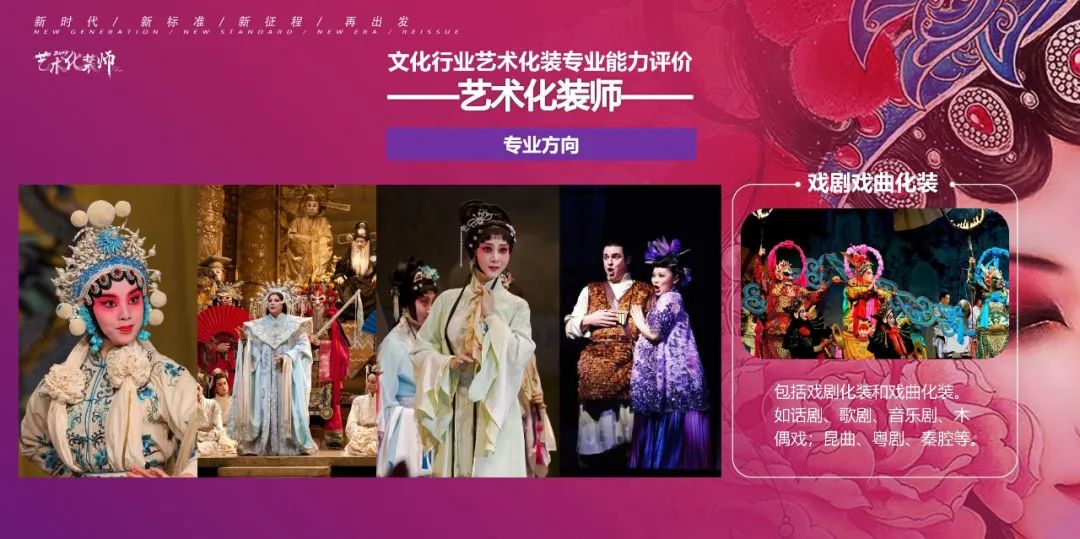 與以往的化妝師、美容師、美發師的技能證不同,藝術化裝師證是由國家文化和旅游部人才中心頒發的帶有國徽標識的職稱證,持證者會被納入國家專業人才信息庫,享有社會職稱等福利待遇。同時,雙師證即意味著你可以從事藝術化裝的教育工作。