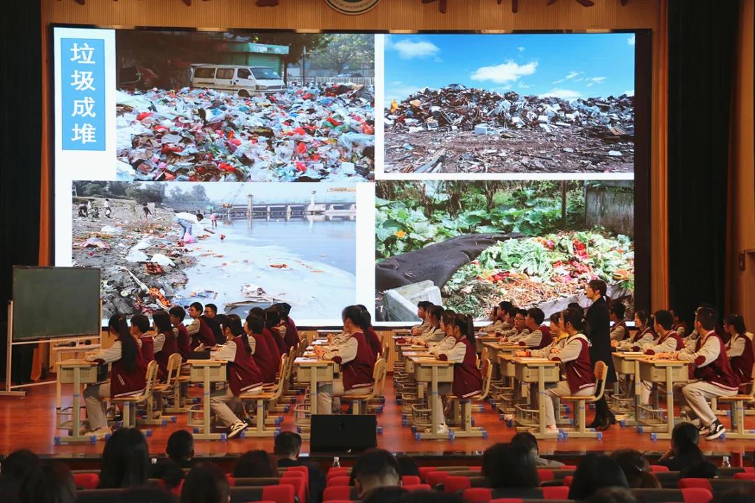 初二年級11班班主任李玲以《垃圾是放錯的資源》為主題,通過數據分析、學生展示,為大家講解了如何進行正確的垃圾分類,保護環境和資源再利用。